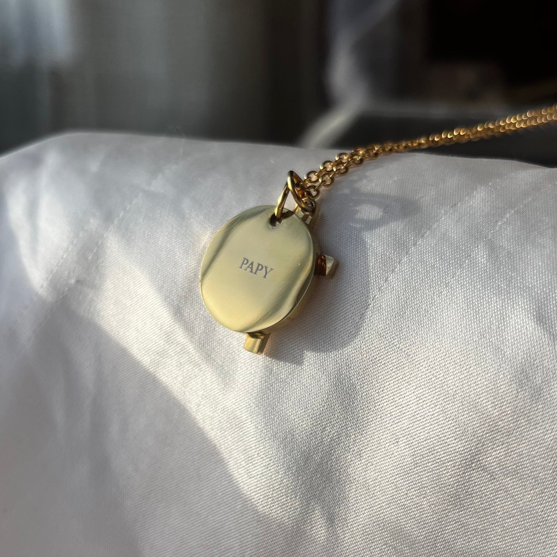 Conçu en acier inoxydable , il est disponible en finition ou , garantissant une excellente résistance à l'eau, au temps et à l'usure du quotidien. Sa gravure nette et durable en fait un objet à la fois discret, élégant et profondément spirituel.